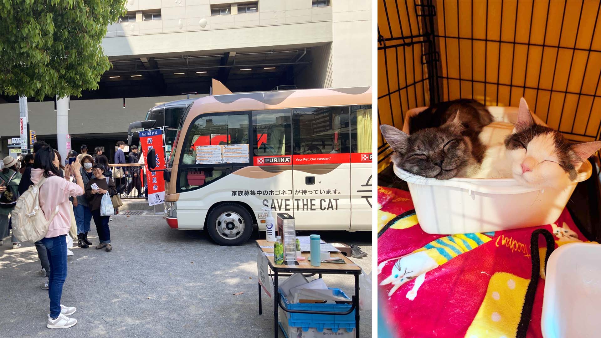 会場ではネコのバス譲渡会と製品サンプリングを実施。