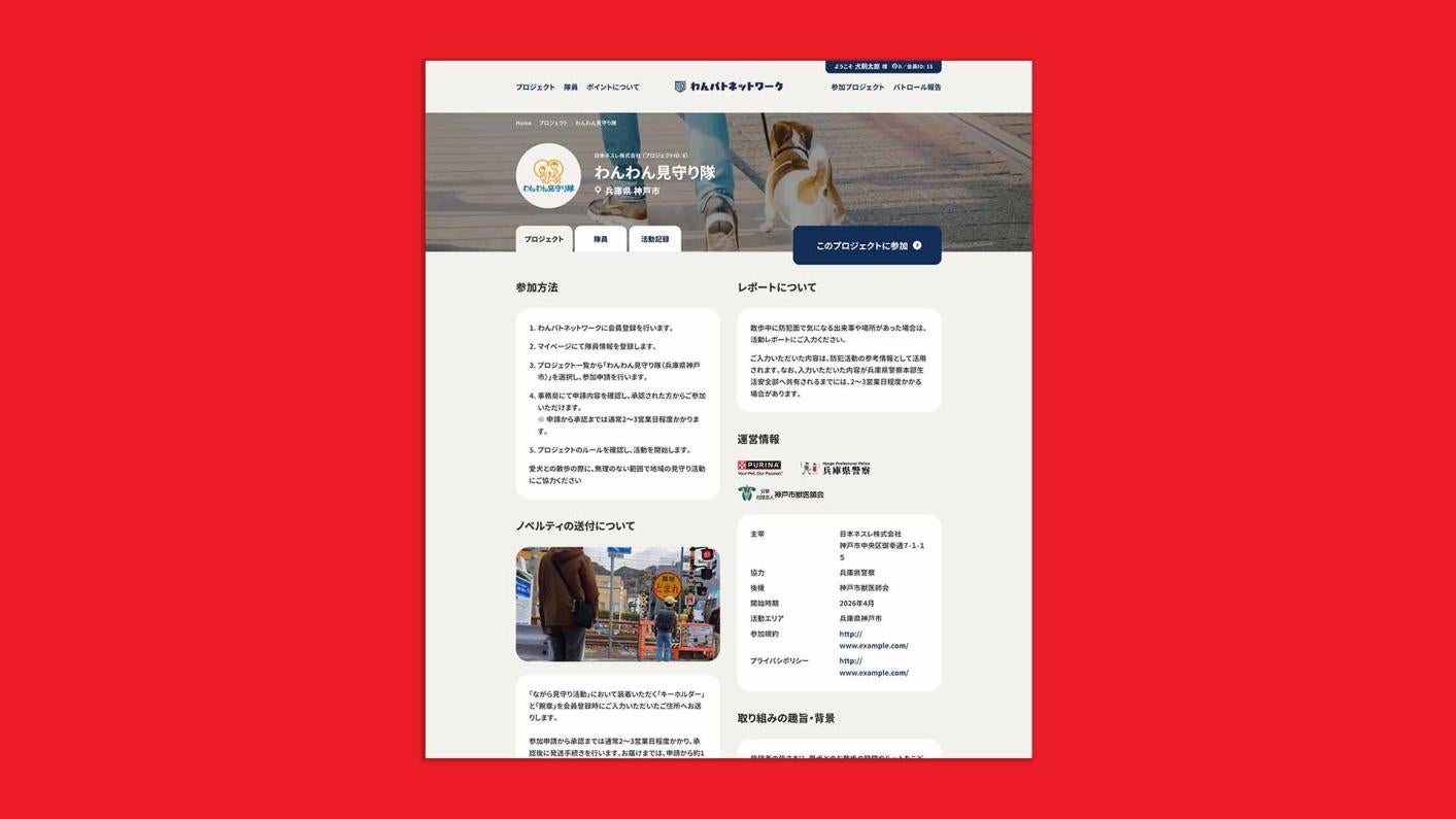 ネスレ ピュリナは兵庫県警察と公益社団法人・神戸市獣医師会と「ながら見守り活動の推進に関する連携協定」を結び、新プロジェクト「わんわん見守り隊」をスタートいたします。