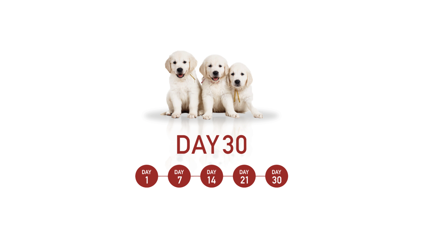 初めて成犬用製品を与えるときは、お腹の調子を維持するために1週間程度かけて切り替えてください。現在の食事を少しずつ減らし、成犬用フードの量を少しずつ増やしてください*。