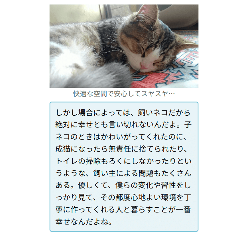 三匹の猫たちが集まって、ゆるりと、身近な愚痴を言い合ったり、真面目な話題について語りあったり…