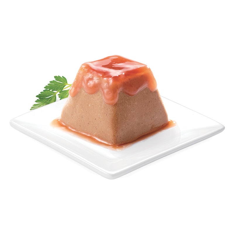 上から滴る贅沢ジュレソースと、絶妙に柔らかいムースが生む、抜群の美味しさ。見て・嗅いで・舐めて楽しめる形で、ネコちゃんの好奇心をくすぐる総合栄養食。