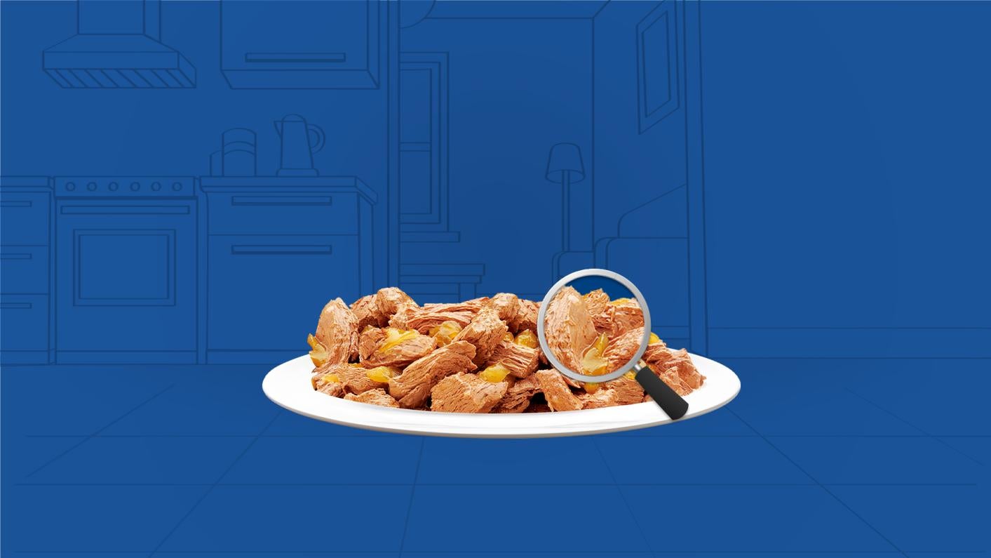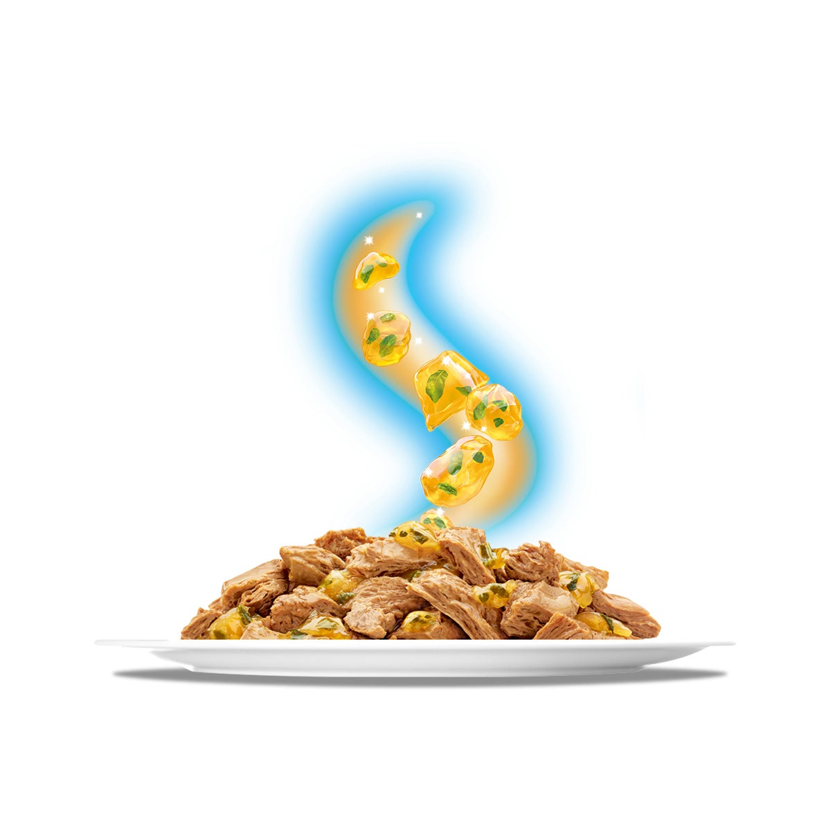 18歳からのネコさんが食べやすい小さめフレーク。やわらかくほぐしたツナのうまみをジューシーなゼリーで包み込んだごはん。