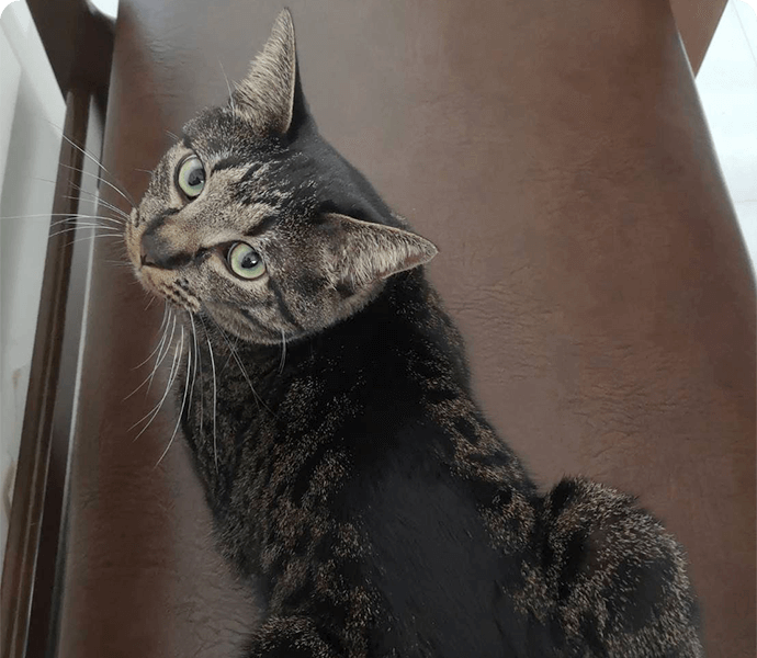 【2匹目】 名前:ポロ(猫♂)2020年生 会社の同僚から保護猫イベントを紹介いただき、妻の実家の近所だったことから参加。子供たち全員がなつっこく優しい顔をしていたポロを気に入り、トライアル後譲渡。大きい音が苦手で臆病だが優しくとても穏やかでなつっこい。黒いキジトラ |